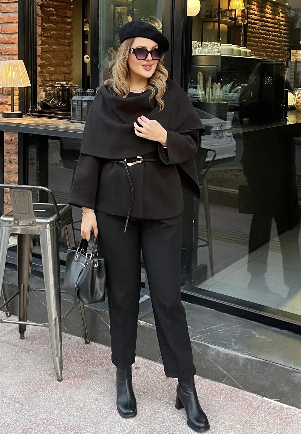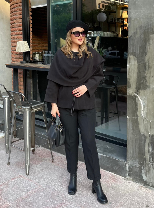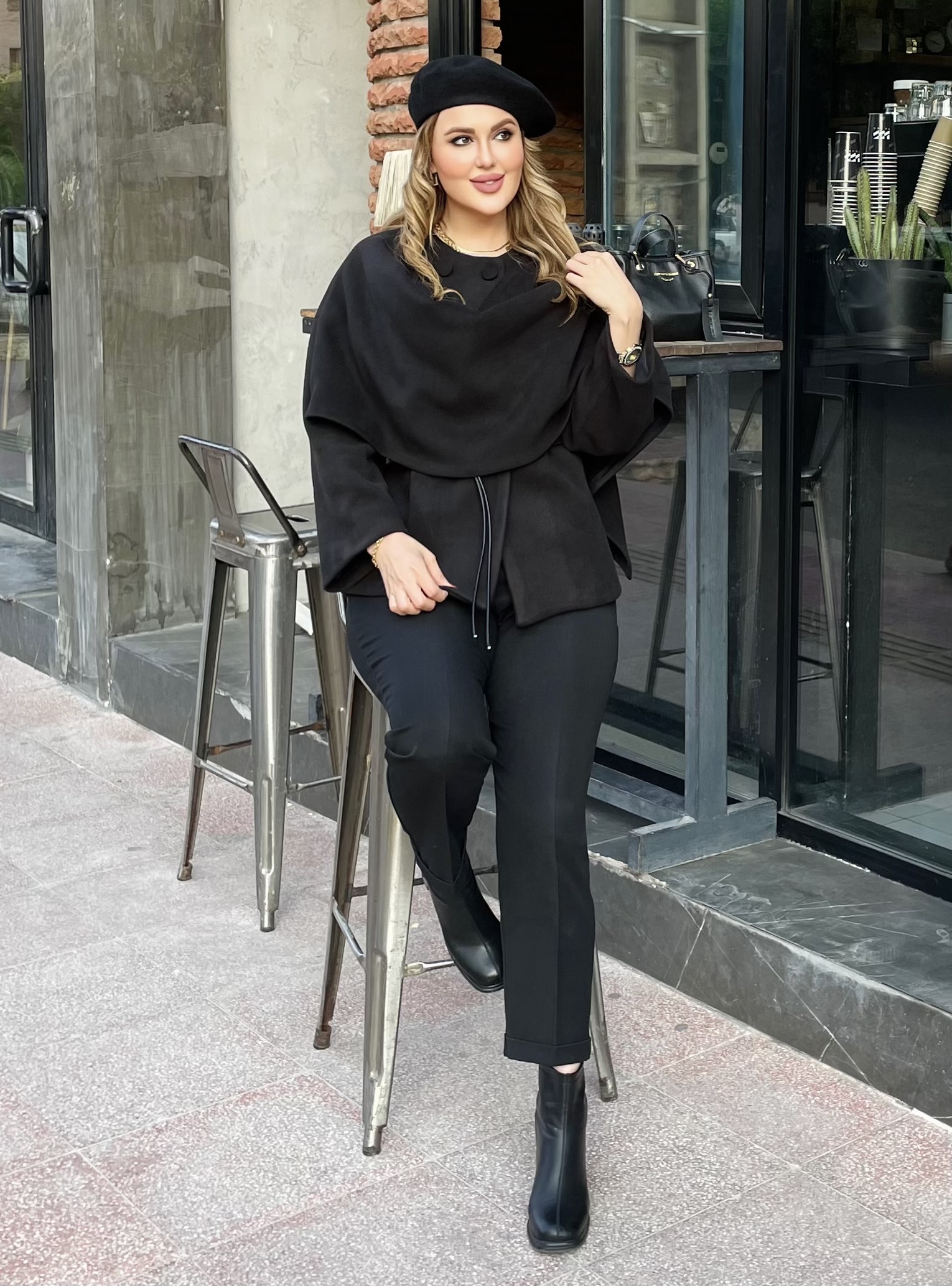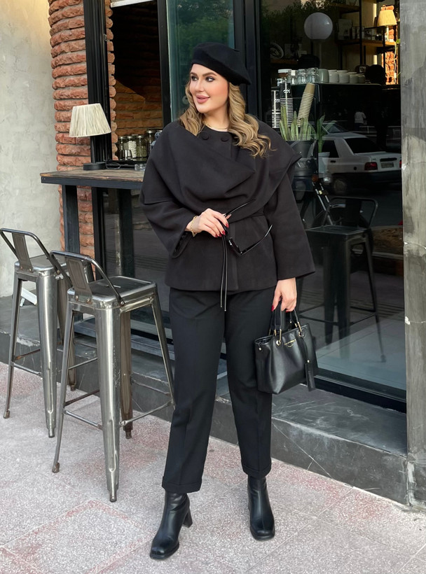 شال این پانچ رو میتونید به سادگی روی شانه ی خود بندازید یا زیر پاگونی که در قسمت سرشانه است قرار بدهید که شال روی شانه فیکس باشد